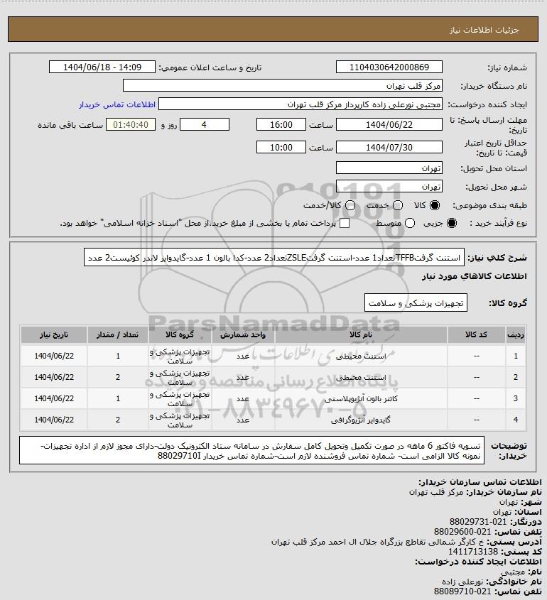 | 2 | -- | استنت محیطی | عدد | تجهیزات پزشکی و سلامت | 2 | 1404/06/22 |