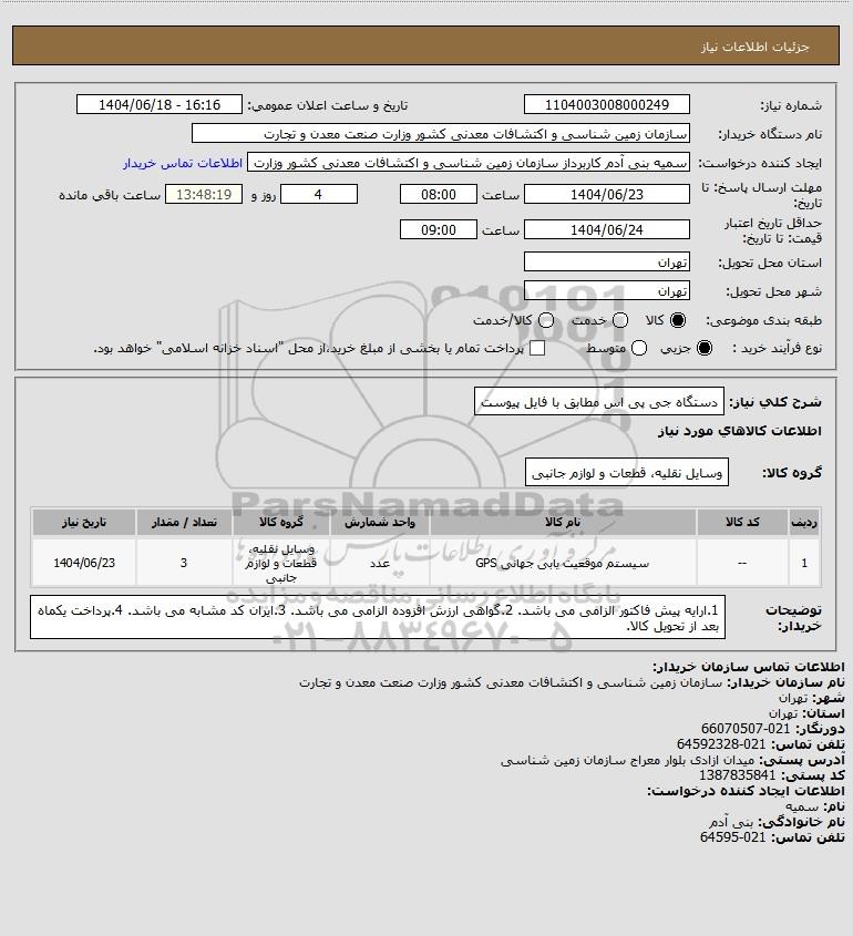 شرح کلی نیاز: دستگاه جی پی اس مطابق با فایل پیوست