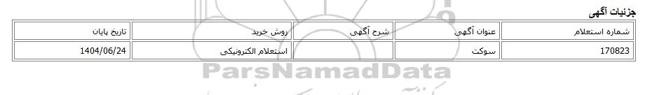 | 170823 | سوکت | استعلام الکترونیکی | 1404/06/24 |