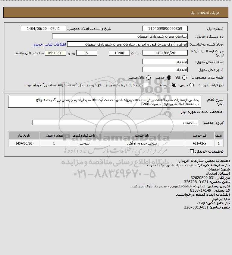 نام دستگاه خریدار:سازمان عمران شهرداری اصفهان