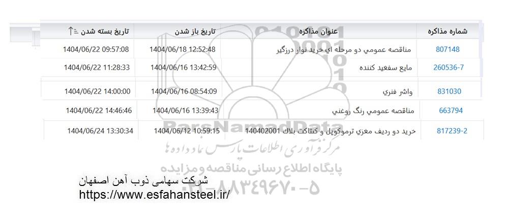 | 807148 | مناقصه عمومی دو مرحله ای خرید نوار درزگیر | 1404.06.22 |