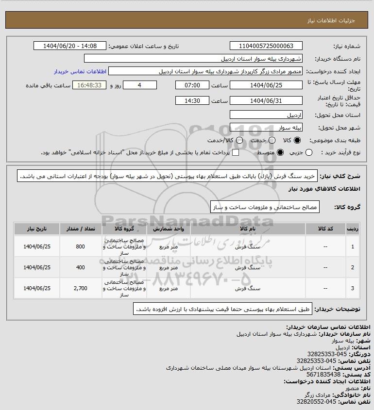 نام دستگاه خریدار:شهرداری بیله سوار استان اردبیل