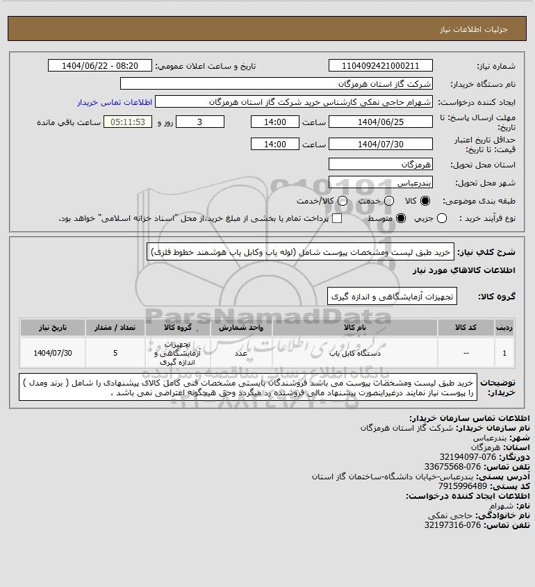 نام دستگاه خریدار:شرکت گاز استان هرمزگان