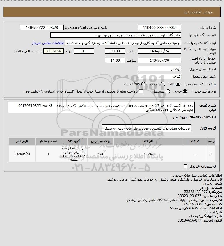 نام دستگاه خریدار:دانشگاه علوم پزشکی و خدمات بهداشتی درمانی بوشهر