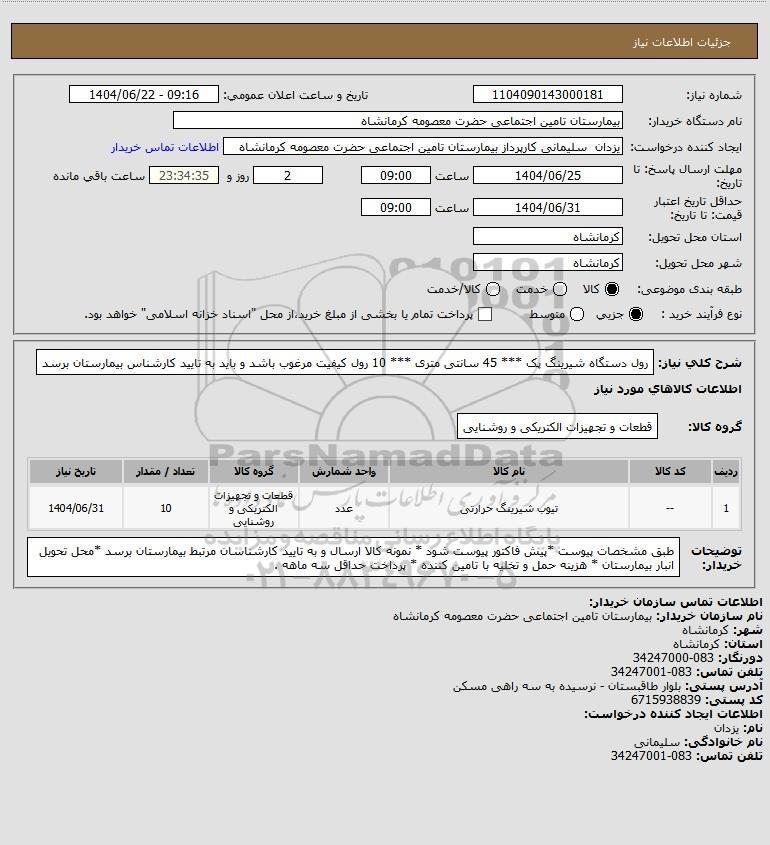 نام دستگاه خریدار:بیمارستان تامین اجتماعی حضرت معصومه کرمانشاه