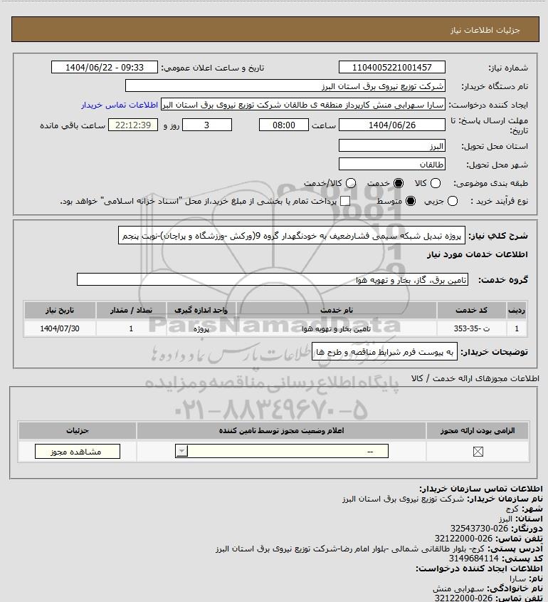 نام دستگاه خریدار:شرکت توزیع نیروی برق استان البرز