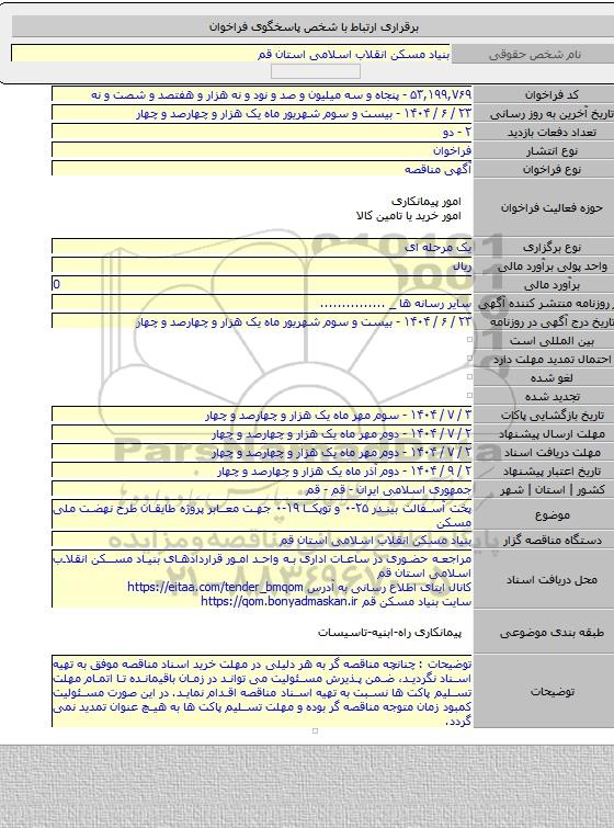 این مناقصه در تاریخ 1404/06/22 شروع و مهلت آن تا تاریخ 1404/07/02 میباشد.