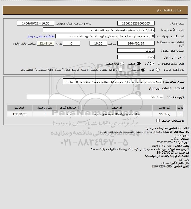 شرح کلی نیاز: تهیه و نصب و اجرا و راه اندازی دوربین های نظارتی ورودی های روستای مانیزان