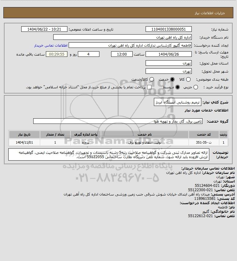 شرح کلی نیاز: ترمیم روشنایی ایستگاه ابردژ