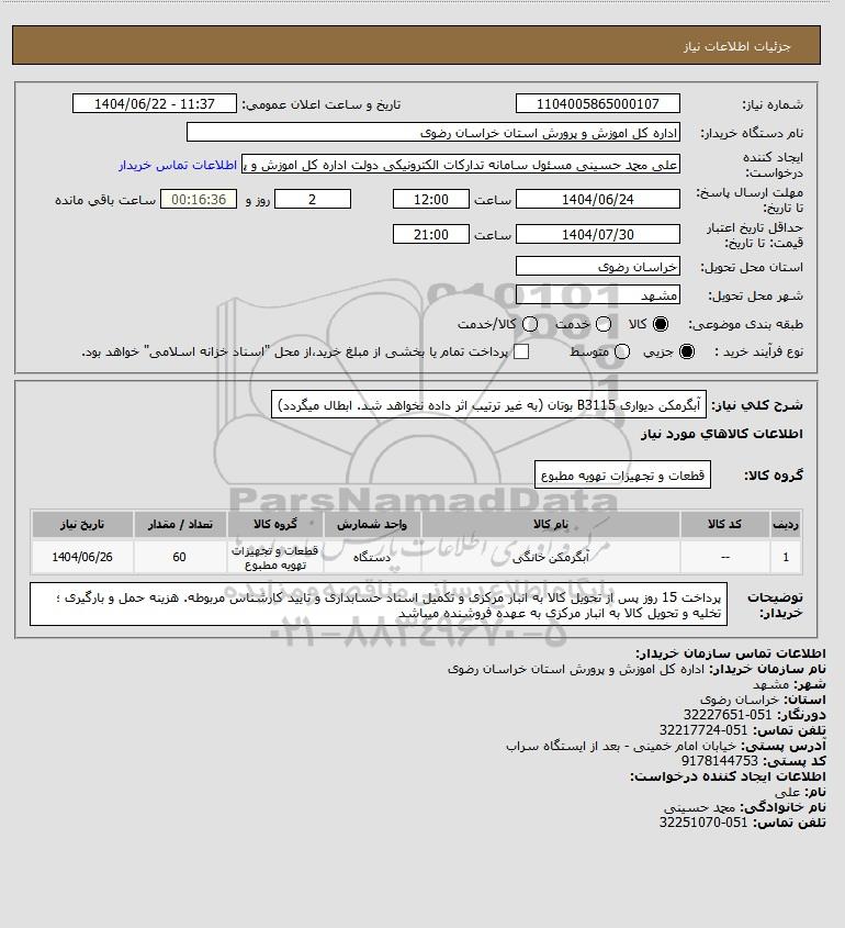 نام دستگاه خریدار:اداره کل اموزش و پرورش استان خراسان رضوی