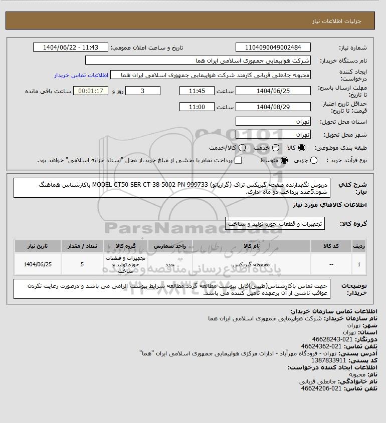 نام دستگاه خریدار:شرکت هواپیمایی جمهوری اسلامی ایران هما