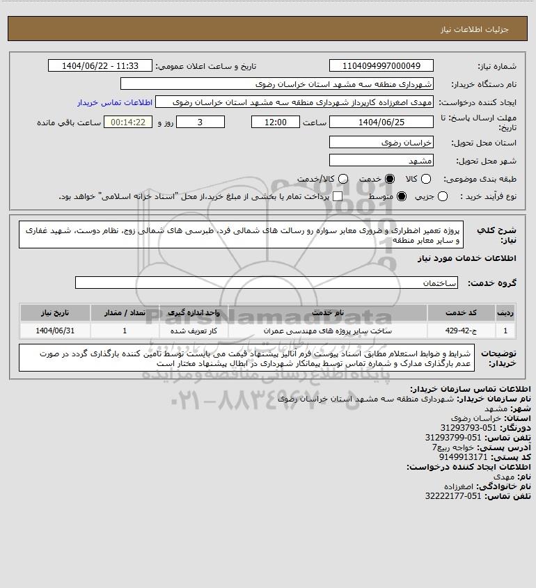 نام سازمان خریدار: شهرداری منطقه سه مشهد استان خراسان رضوی
