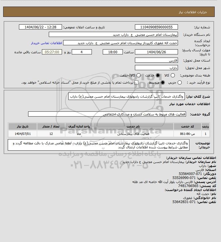 استعلام واگذاری خدمات تایپ گزارشات رادیولوژی بیمارستان امام حسن مجتبی(ع) داراب, استعلام واگذاری خدمات تایپ گزارشات رادیولوژی بیمارستان امام حسن مجتبی(ع) داراب