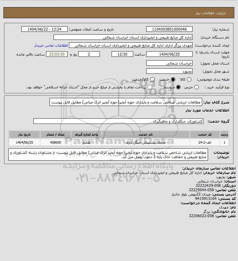 نام دستگاه خریدار:اداره کل منابع طبیعی و ابخیزداری استان خراسان شمالی