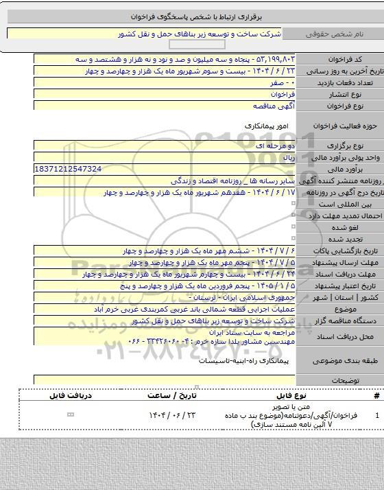 برای شرکت در مناقصه حتما از تصویر آگهی در سایت پارس نماد داده ها استفاده نمایید