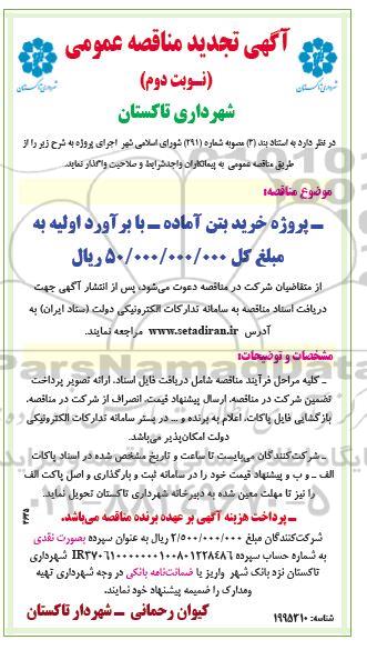 -  پروژه خرید بتن آماده- با براورد اولیه به مبلغ کل 50.000.000.000 ریال