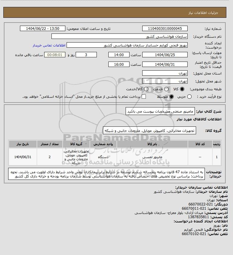 1 -- مانیتور لمسی دستگاه تجهیزات مخابراتی، کامپیوتر، موبایل، ملزومات جانبی و شبکه 2 1404/06/31