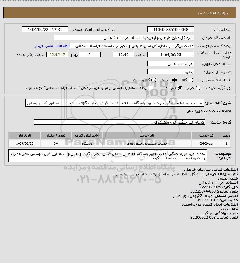 نام دستگاه خریدار:اداره کل منابع طبیعی و ابخیزداری استان خراسان شمالی