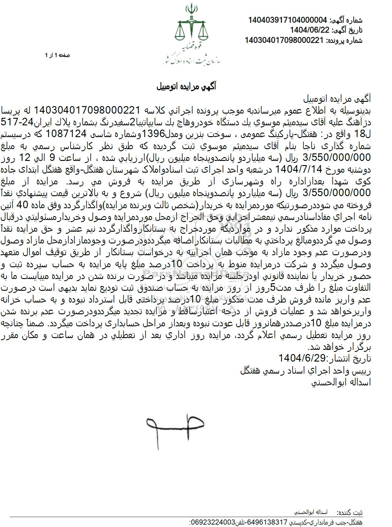 تاریخ مزایده : 1404.7.14 از ساعت 9 الی 12 روز دوشنبه