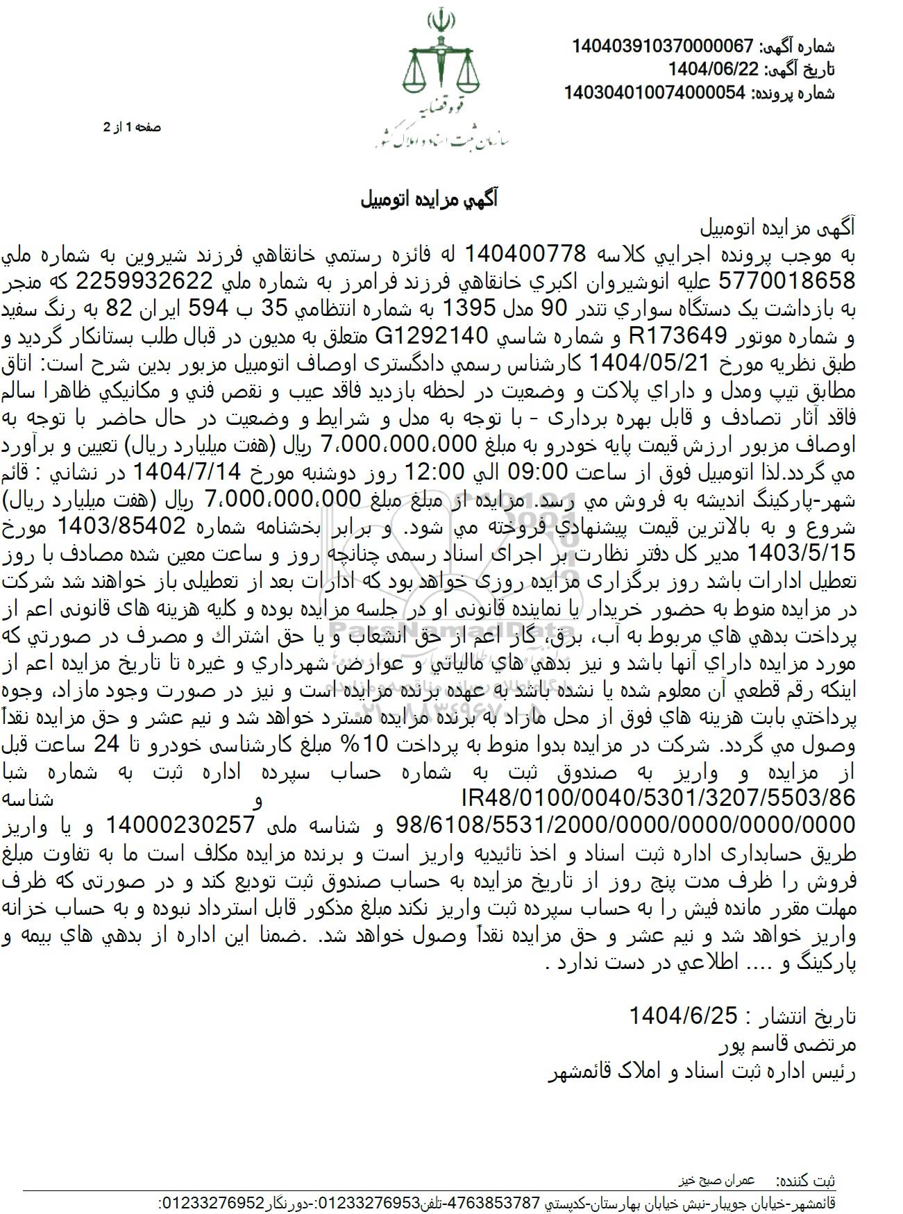 شماره آگهی 140403910370000067
