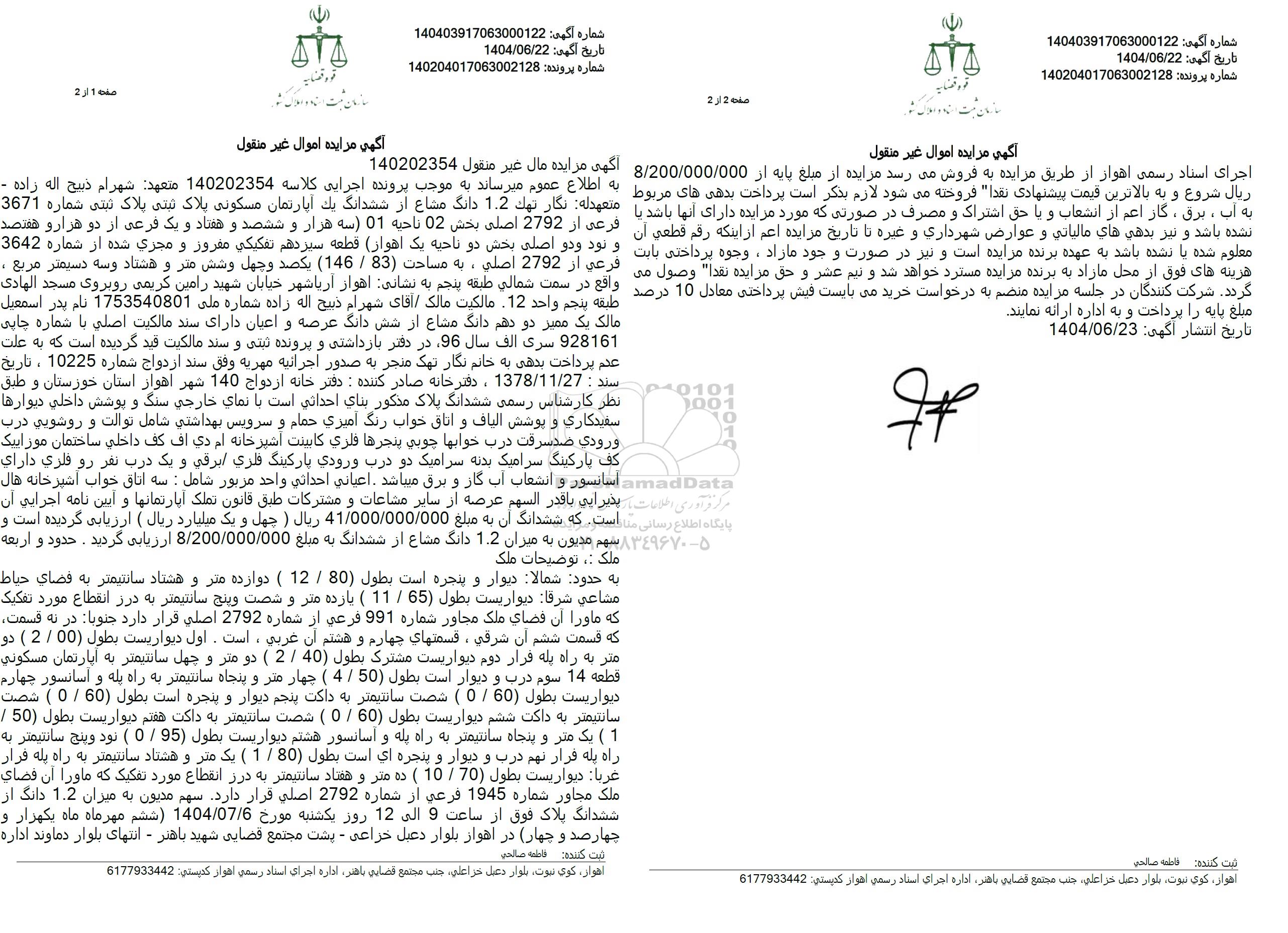 مزایده فروش یک آپارتمان مسکونی به مساحت 146.83 مترمربع, مزایده فروش یک آپارتمان مسکونی به مساحت 146.83 مترمربع