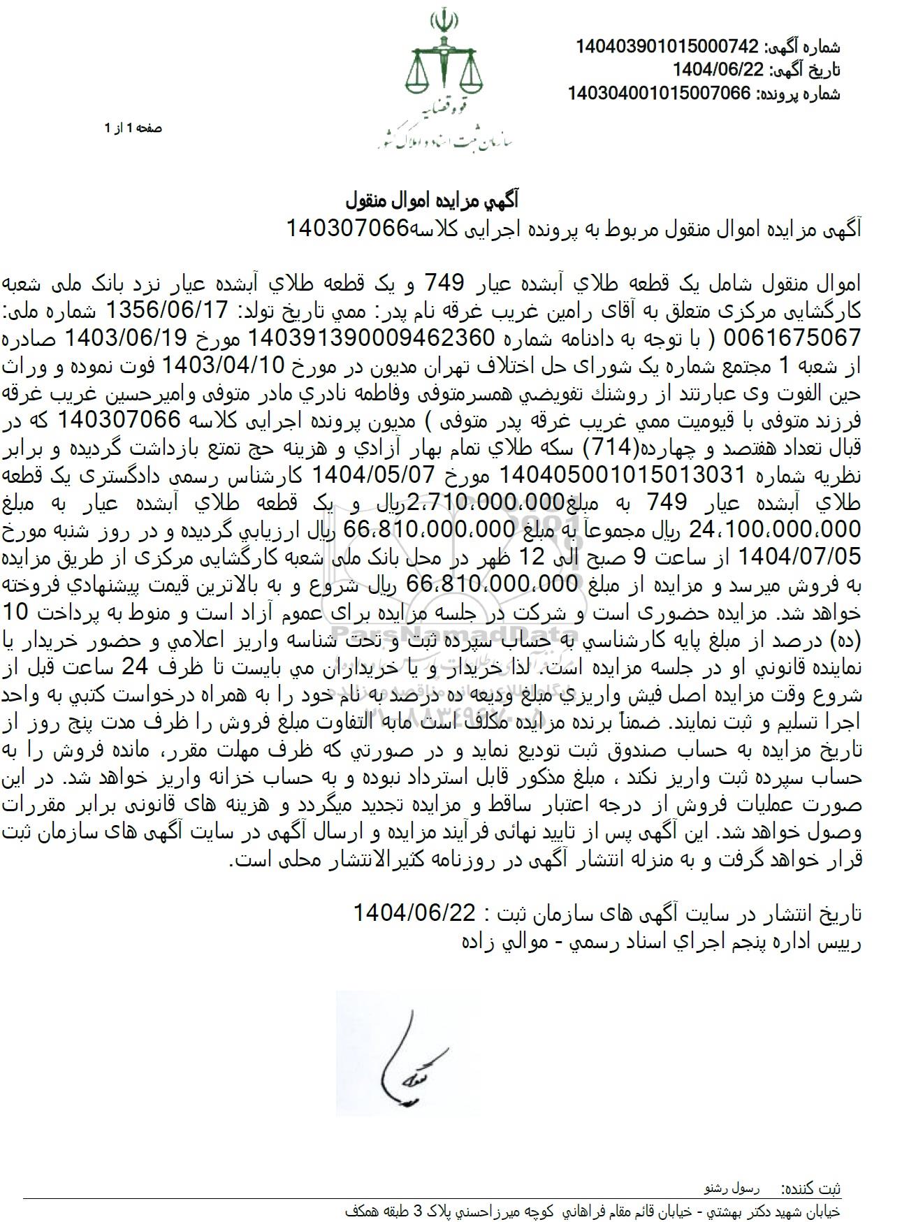 شماره آگهی : 140403901015000742