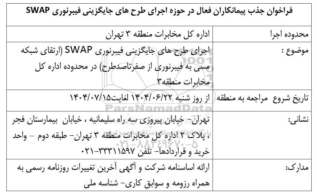 فراخوان جذب پیمانکاران فعال در حوزه اجرای طرحهای جایگزینی فیبرنوری SWAP