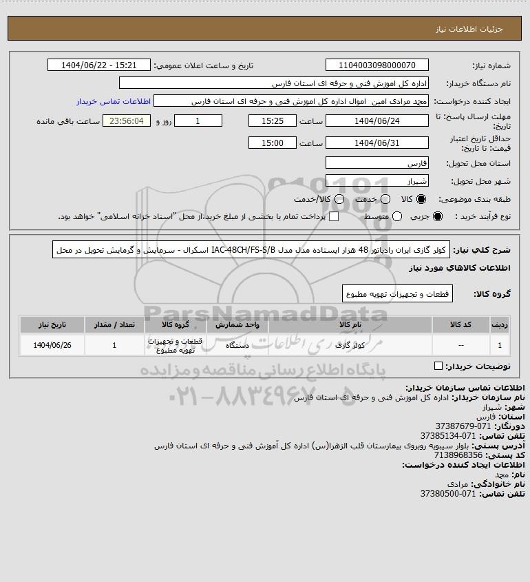 نام دستگاه خریدار:اداره کل اموزش فنی و حرفه ای استان فارس