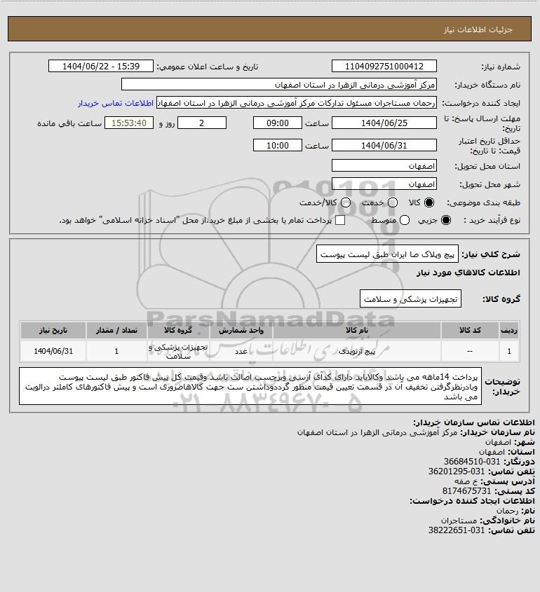 نام دستگاه خریدار:مرکز آموزشی درمانی الزهرا در استان اصفهان