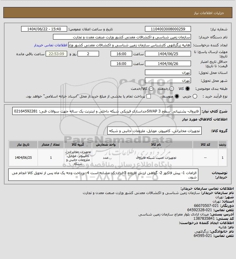 نام دستگاه خریدار:سازمان زمین شناسی و اکتشافات معدنی کشور وزارت صنعت معدن و تجارت