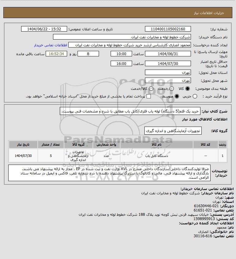 نام دستگاه خریدار:شرکت خطوط لوله و مخابرات نفت ایران