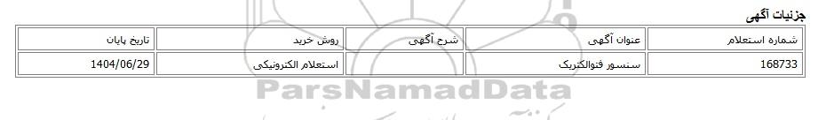 | 168733 | سنسور فتوالکتریک | استعلام الکترونیکی | 1404/06/29 |