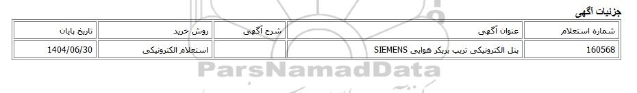 160568پنل الکترونیکی تریپ بریکر هوایی SIEMENSاستعلام الکترونیکی1404/06/30