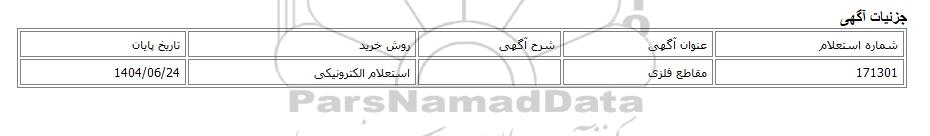 | 171301 | مقاطع فلزی | استعلام الکترونیکی | 1404/06/24 |