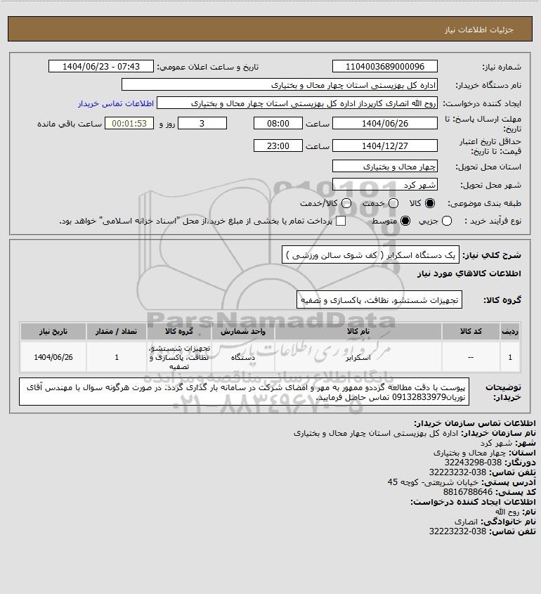 1 -- اسکرابر دستگاه تجهیزات شستشو، نظافت، پاکسازی و تصفیه 1 1404/06/26