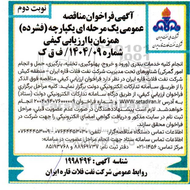 شناسه آگهی : 1998494 روابط عمومی شرکت نفت فلات قاره ایران