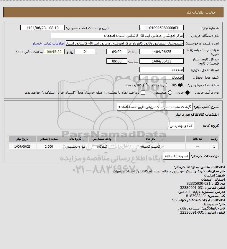 نام دستگاه خریدار:مرکز اموزشی درمانی ایت الله کاشانی استان اصفهان