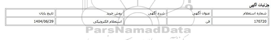 | 170720 | فن | استعلام الکترونیکی | 1404/06/29 |