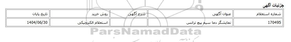 | 170495 | نمایشگر دما سیم پیچ ترانس | استعلام الکترونیکی | 1404/06/30 |