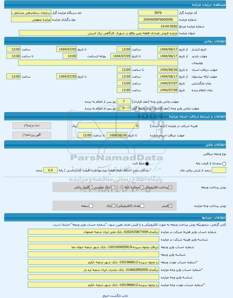| شماره مزایده | 2004005976000008 | |||