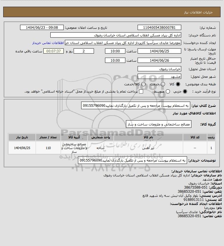 نام دستگاه خریدار:اداره کل بنیاد مسکن انقلاب اسلامی استان خراسان رضوی