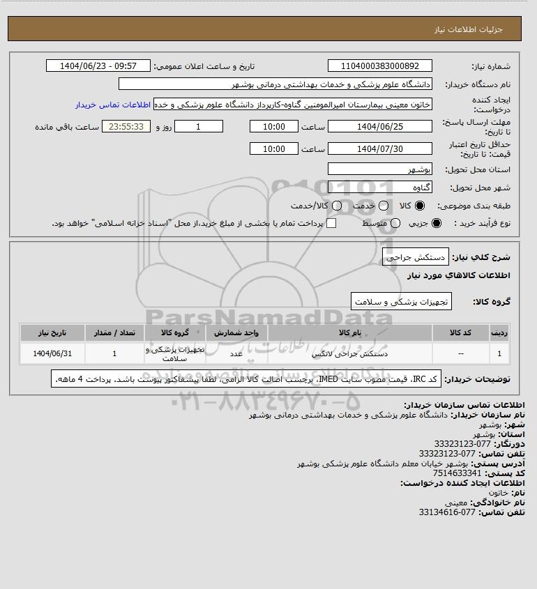 نام دستگاه خریدار:دانشگاه علوم پزشکی و خدمات بهداشتی درمانی بوشهر