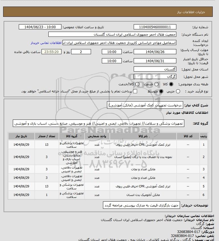 نام دستگاه خریدار:جمعیت هلال احمر جمهوری اسلامی ایران استان گلستان