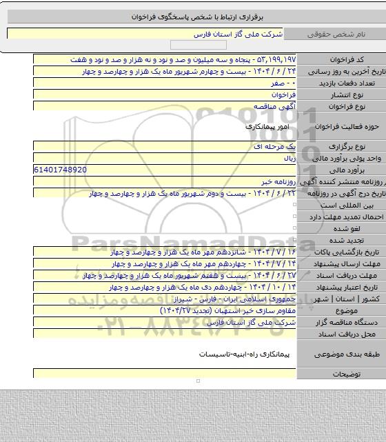 پارس نماد داده ها، خبرگزاری مناقصات و مزایدات کشور