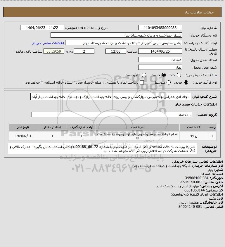 نام سازمان خریدار: شبکه بهداشت و درمان شهرستان بهار