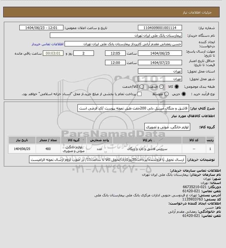 نام سازمان خریدار: بیمارستان بانک ملی ایران تهران