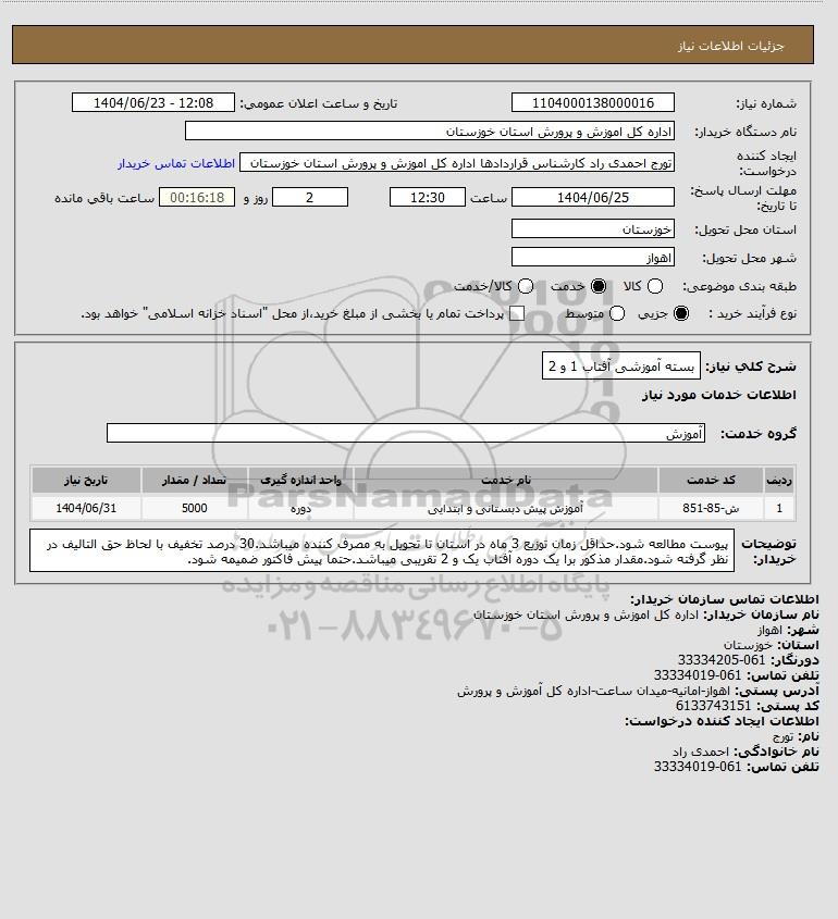 نام دستگاه خریدار:اداره کل اموزش و پرورش استان خوزستان