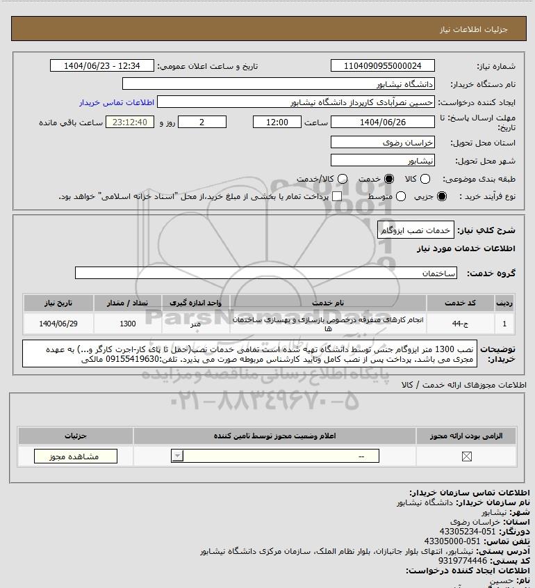 نام دستگاه خریدار:دانشگاه نیشابور