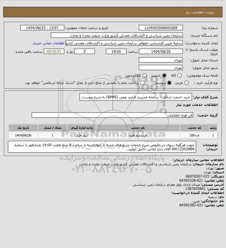 شرح کلی نیاز: خرید خدمت شامل : سامانه مدیریت فرایند بومی (BPMS) به شرح پیوست.