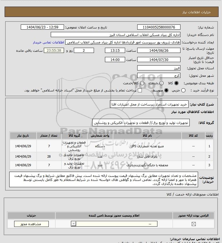 نام دستگاه خریدار:اداره کل بنیاد مسکن انقلاب اسلامی استان البرز
